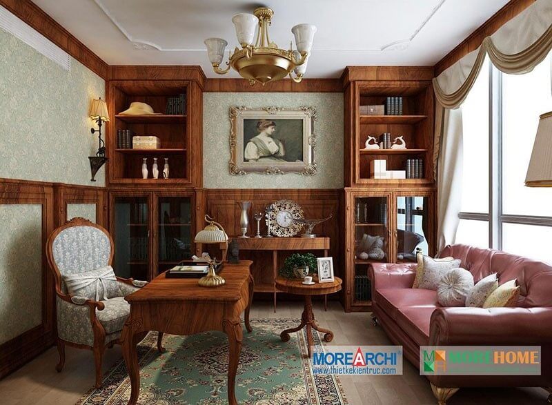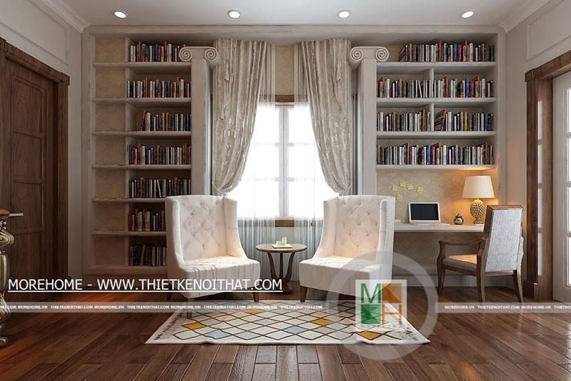 Thiết kế phòng đọc sách kết hợp phòng làm việc tại biệt thự Hoa Phượng sang trọng