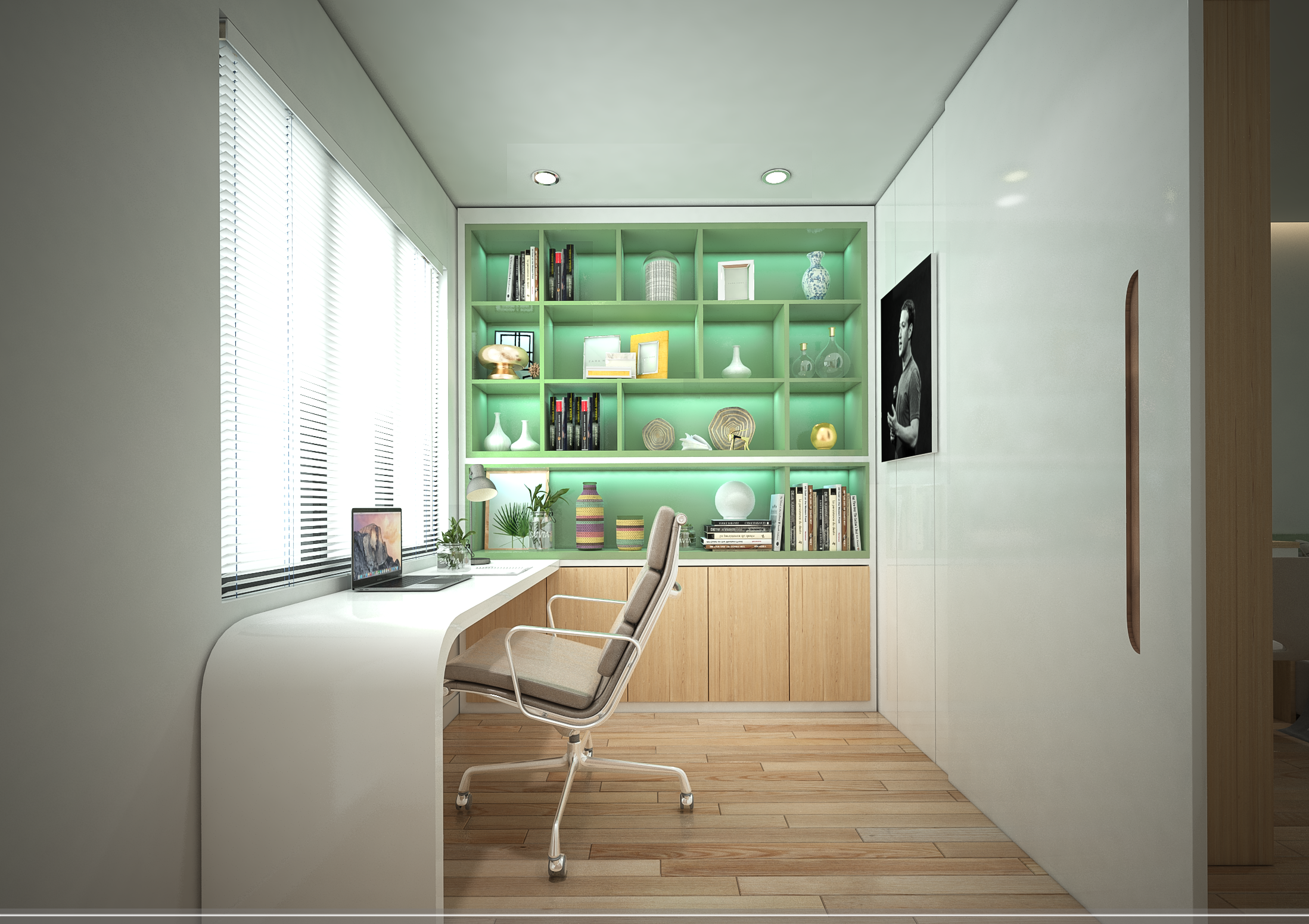 Khu vực làm việc được thiết kế liền kề với cửa sổ, tạo cho căn phòng luôn thoáng và tạo sự tập trung hơn cho gia chủ
