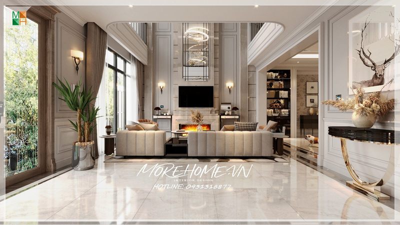 Đá ốp vách tivi màu sáng sang trọng cung cấp thêm sự nổi bật và giá trị thẩm mỹ cho không gian sống của gia đình.
